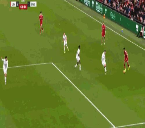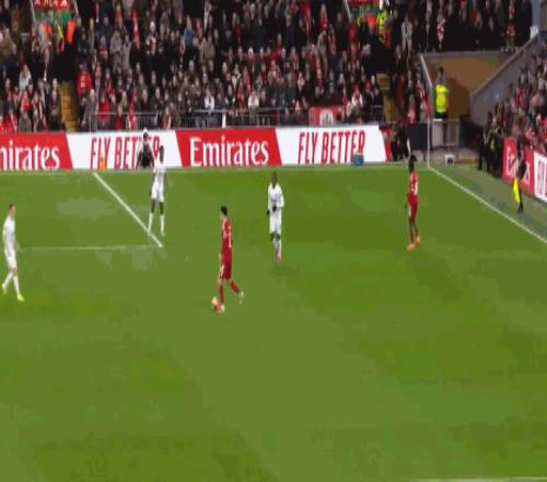 第9分钟,平地起惊雷,索博斯洛伊世界波轰入死角,利物浦1-0